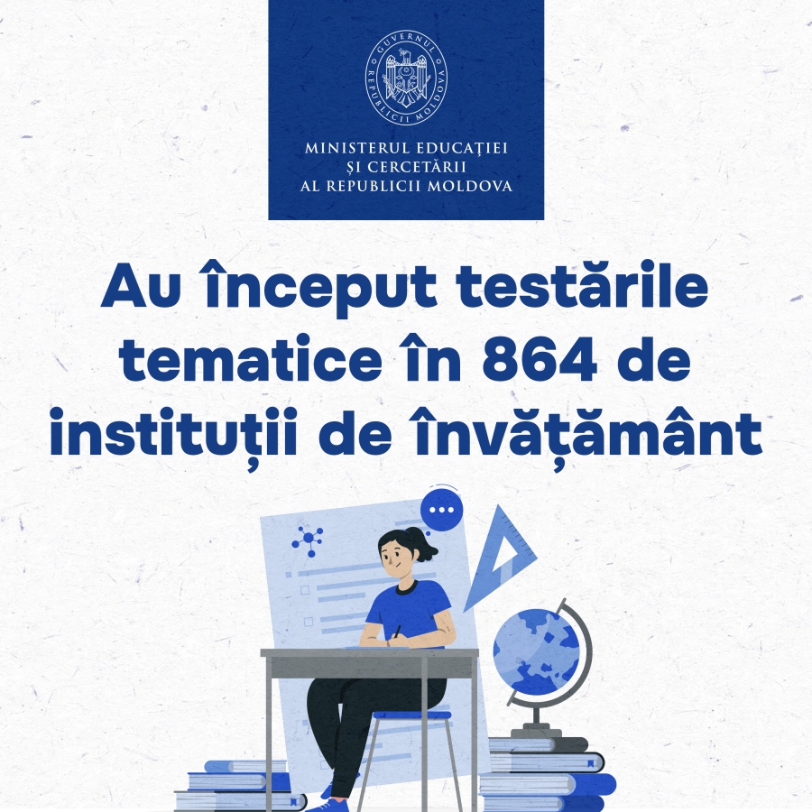 Astfel, elevii din 34 de raioane, inclusiv municipiile Bălți și Chișinău, realizează probe scrise de evaluare a competențelor la limba și literatura română și la matematică în clasa a V-a și, de asemenea, la limba străină (engleză sau franceză) în clasa a VIII-a. La aceste testări participă elevii din 864 de instituții de învățământ.